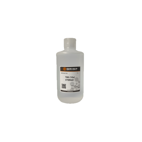 TBS (10X) is an aqueous solution of Tris and Sodium Chloride, prepared with ultrapure water, and sterilized. TBS is commonly used as a pH buffer for Western Blot and ELISA procedures as it enables washing without disrupting antibody-antigen binding.